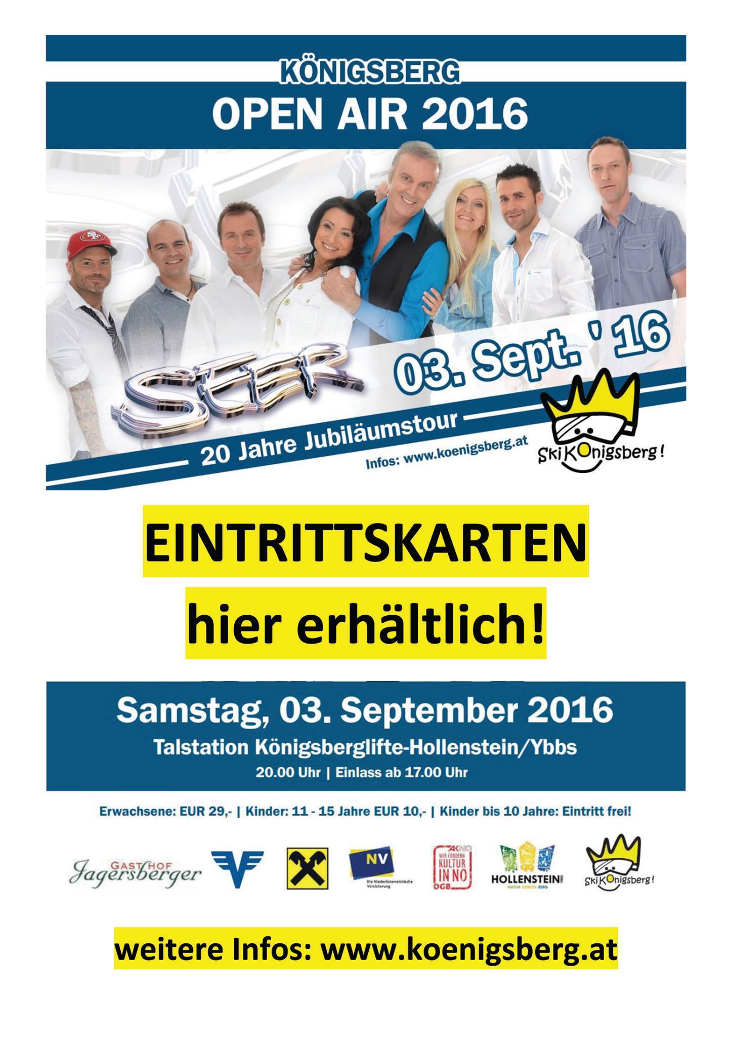 Noch ein Geschenktipp neben Uhren und Glitzer ;-): Eintrittskarten für das Open Air Konzert der SEER am 3.9.2016 am Königsberg/Hollenstein ab sofort bei uns erhältlich!!